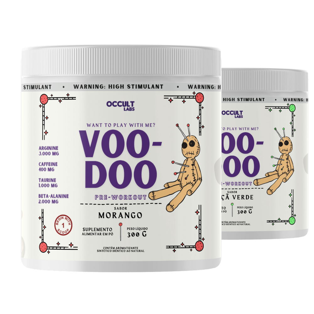 O Voo-Doo não é um pré-treino qualquer. É uma fórmula ritualística com ativos em doses reais, elaboradas para te proporcionar o melhor desempenho com muita energia, foco e resistência.